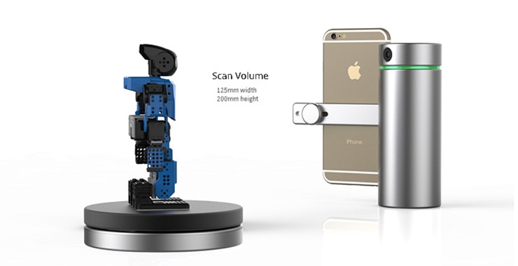 別看eora 3D掃描儀長得沒有什么特色,它的每一道工藝可都是比較細致的,誤差控制在50μm之內。圓柱體表面均采用陽很氧化膜覆蓋,通過防反射膜的玻璃透鏡,eora 3D的掃描精度達到了前所未有的100 微米,誤差正負250微米。它所創建的模型支持達800萬個頂點,而且掃面結果是以彩色的形式在手機上同步顯示。