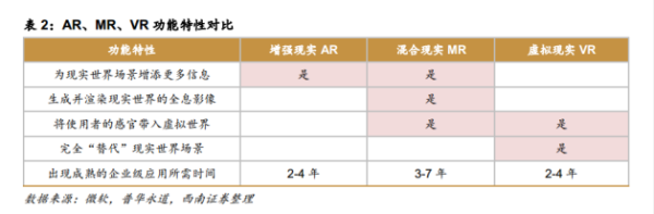 不僅要比較AR和VR,還要和MR放在一起來比較,三者的區別和聯系就一目了然了。AR和VR的技術原理、應用場景都是有較大區別的。具體如下圖: